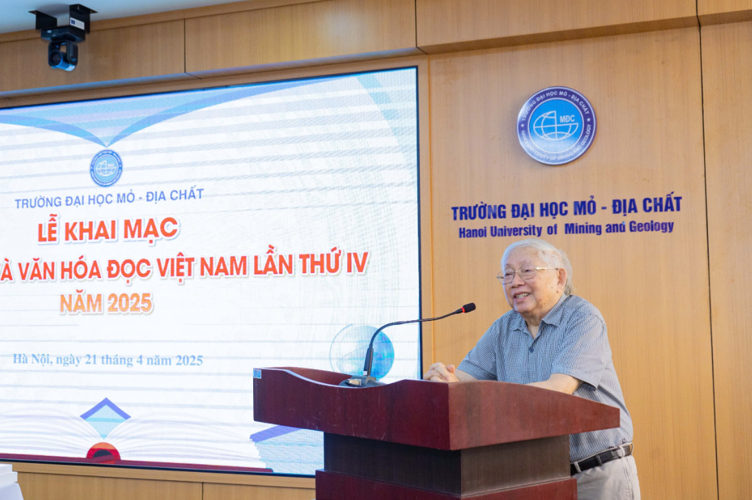 Chia sẻ ngắn gọn tại Ngày hội, GS.TSKH Phan Trường Thị – Nguyên Phó Hiệu trưởng Trường Đại học Tổng hợp, người đã đồng hành với HUMG từ những ngày đầu thành lập Bộ môn Khoáng thạch, nhấn mạnh rằng: đọc sách không chỉ để thưởng thức hay mở rộng hiểu biết, mà còn là một quá trình chiêm nghiệm, cảm nhận tư tưởng của tác giả để hình thành nên những suy nghĩ sâu sắc và có trách nhiệm.