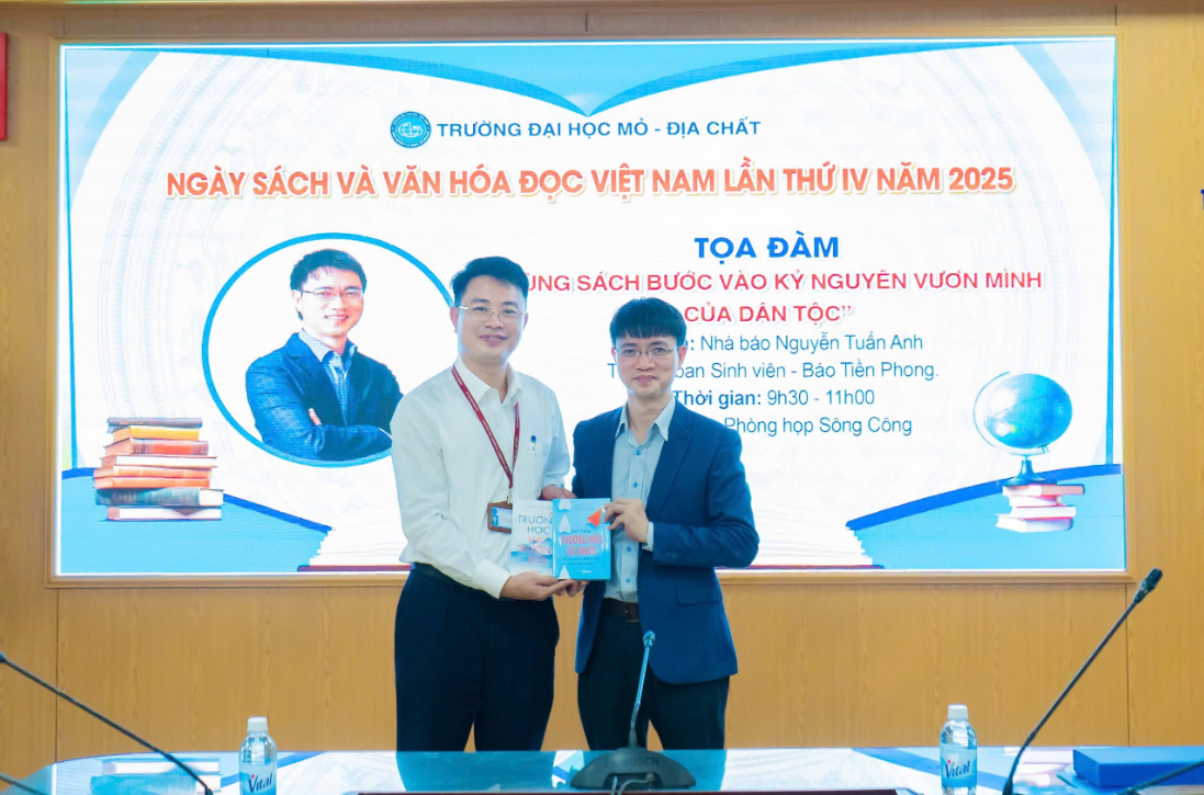 Cũng trong khuôn khổ Ngày sách và văn hóa đọc năm 2025 đã diễn ra buổi Tọa đàm “Cùng sách bước vào kỷ nguyên vươn mình của dân tộc” mang đến những góc nhìn mới mẻ và cảm hứng sống tích cực cho sinh viên qua phần chia sẻ của nhà báo – tác giả Nguyễn Tuấn Anh (Trưởng ban Sinh viên - Báo Tiền Phong) với thầy cô giáo và sinh viên HUMG. Bên cạnh đó, tại sảnh Nhà C12 tầng đã diễn ra không gian trưng bày, sếp sách nghệ thuật của Nhà trường và các đơn vị tài trợ. Đây là là một điểm nhấn đặc biệt của Ngày hội. Với cách bài trí sáng tạo, sinh động, không gian sách được sắp xếp theo chủ đề, thể loại khác nhau, tạo sự hấp dẫn và thu hút người xem.